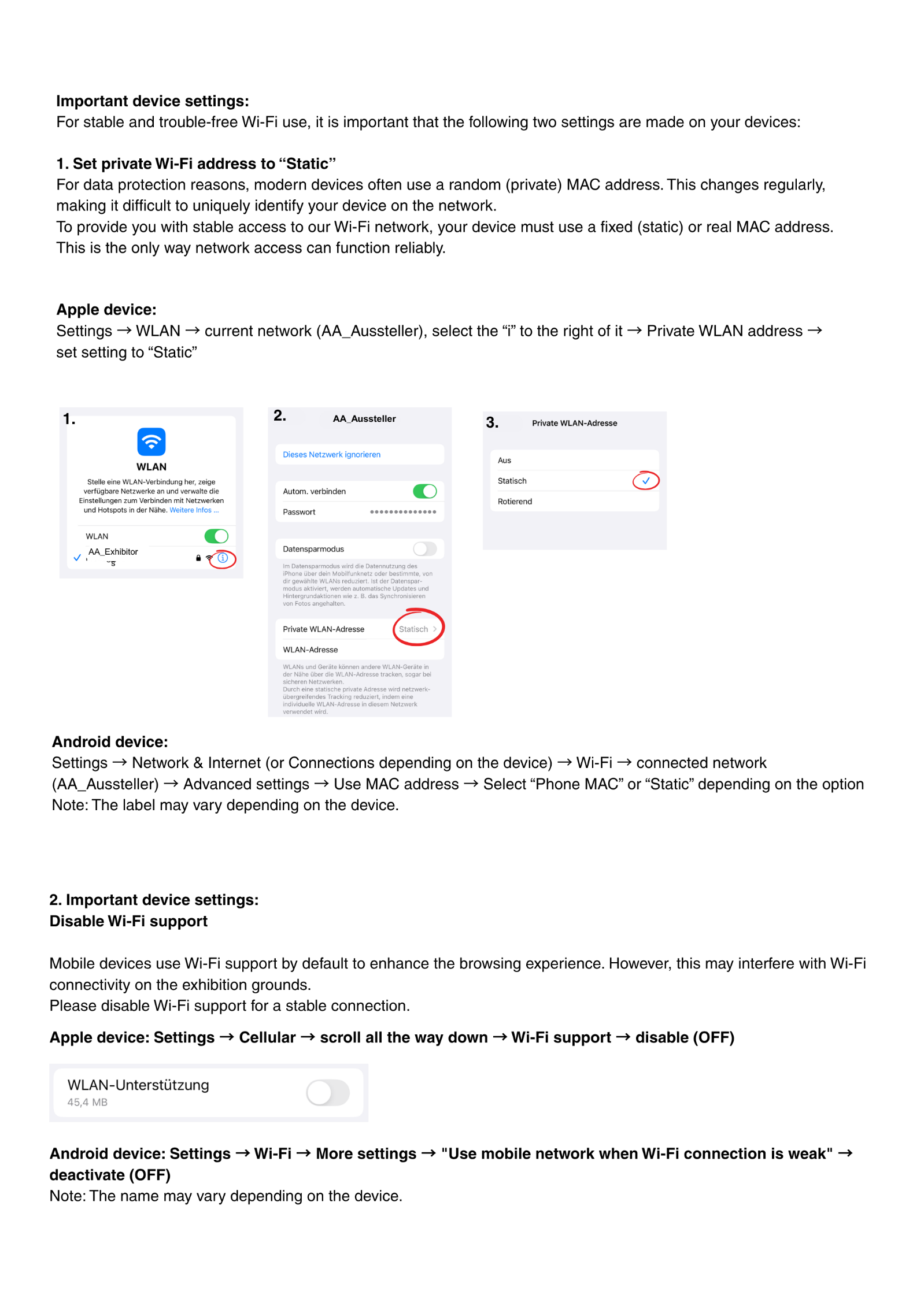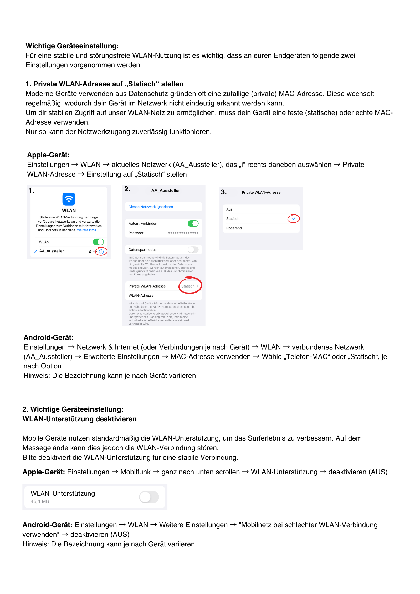 Ihres Aufenthalts auf dem Messegelände nicht die WLAN-Einstellungen, (Private MAC-Adresse